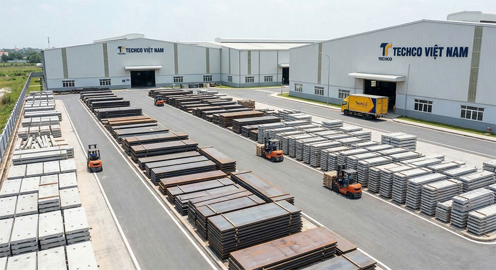 “Chất lượng sản phẩm bắt đầu từ chất lượng nguyên liệu” là nguyên tắc cốt lõi của TechCo. Sự ngăn nắp và quy mô của kho bãi là minh chứng đầu tiên cho năng lực đáp ứng những đơn hàng lớn cho mọi công trình.