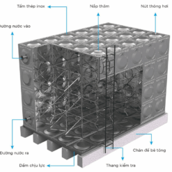 Bồn nước lắp ghép (Sectional Water Tank) là hệ thống lưu trữ nước thông minh được tạo thành từ việc liên kết các tấm panel (mô-đun) rời rạc. Thay vì đúc nguyên khối, các tấm panel tiêu chuẩn (thường có kích thước 1x1m, 1×0.5m…) được kết nối với nhau bằng hệ thống bu-lông, gioăng cao su chuyên dụng và khung giằng chịu lực cực kỳ chắc chắn.